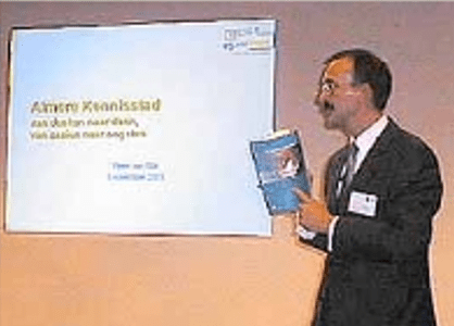 Ook Cor de Ruijter, directeur van IIE (ofwel Institute for Information Engineering) hield een inleiding voor een zaal van zo’n 100 aanwezigen, waarna Peter van Eijk projektleider van “Almere Kennisstad” de eerste serie projekten in het kader van Almere Kennisstad toelichtte. Hij hield een Powerpoint-presentatie en startte met een foto van het Muiderslot (het Almeerse kasteel laat nog even op zich wachten). Maar het bijzondere van het Muiderslot was, dat er een Muiderkring ontstond: eigenlijk een kenniskring avant la lettre!